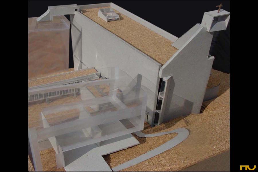 edifici religiós, formigó, llum zenital, modulor, ondulatoires, pilotis, promenade,