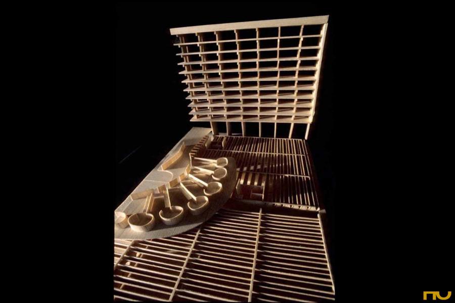 brise-soleil, edifici d'oficines, forma còncava, llum zenital, modulor, pilotis, promenade,