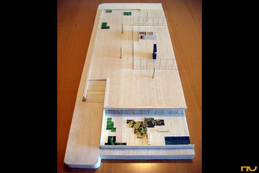 La Nueva Galeria Nacional, cierre de la carrera de Mies y retorno a la ciudad que habÃa abandonado en 1938 es uno de sus mayores proyectos: la cubierta mide 64,80 m de lado y la retÃcula ortogonal de vigas de alma llena, de 1,80m de altura que la soportan forma unos recuadros de 3,60 m. Ocho columnas metálicas cruciformes -dos por lado- de 8,40 m de alto y pintadas de negro van reduciendo suavemente su sección hasta el encuentro con los bordes de la parrilla resuelto mediante una articulación. La distancia de los apoyos al final del voladizo en la esquina es de 18 m, compensando asà las flechas en el centro de la malla. La cubierta fue levantada como una sola pieza mediante 16 gatos, colocados en los sitios donde luego se colocarÃan las columnas. Aprovechando el desnivel este-oeste, Mies dispone el edificio en dos niveles; el nivel superior está dominado por el hall totalmente vidriado de 50,5 de lado y libre de columnas, como "espacio universal" destinado a exposiciones temporales y el nivel mas bajo, prolongado en un patio, se dedica a las colecciones permanentes. Es indiscutible la evolución constructiva y estructural de este proyecto de Mies al mismo tiempo que innegables sus referencias shinkelianas. Ello aparece confirmado por la percepción del espacio, el interior casetonado, el uso del estereóbato y del estilóbato, el orden del peristilo formado por columnas cruciformes (donde Mies parece interpretar el ábaco y el equino), o el ritmo entre los rigidizadores del alma de las vigas, evocadores de las metopas clásicas. En definitiva, Mies presenta un equivalente actual del templo griego, sólo posible a través de la pureza estructural, el correcto empleo de los materiales y la escala monumental. Si la perspectiva habÃa jugado un papel fundamental en los griegos, Mies juega con la geometrÃa -como puede verse en el alzado trapezoidal de las columnas para forzar el efecto monumental o en el control de las fugas de las lÃneas del pavimento o de la malla estructura. Pese a que las fachadas son aparentemente iguales desde el punto de vista del tratamiento formal, la que mira al Este pasa a ser la principal en la medida que desde las amplias escaleras exteriores -hay otras dos escalinatas tangentes a sudeste y noroeste- se constituye un eje de simetrÃa que atraviesa la fachada y queda remarcado con la disposición de las escaleras de acceso al nivel inferior. (FA) |