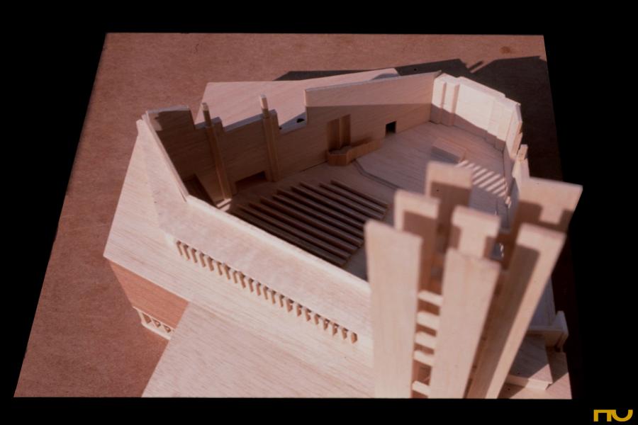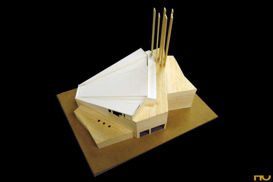 L'església es situa en un turó de forma aproximadament triangular -Kolkanmaki-al lloc on s'aixecava una església luterana de fusta del segle XIX. L'edifici remata pel nord l'eix del carrer principal de la ciutat -Marian Katu- que s'inicia en l'ajuntament, projectat per Eliel Saarinen a inicis del segle XX al sud de la ciutat. La planta es defineix a partir d'un triangle equilà ter al que se li han retallat dos angles, lleugerament girat respecte de l'eix principal de la ciutat, al qual se li agreguen els altres serveis de l'església formant un polÃgon irregular que conté el vestÃbul i l'entrada. La cara sud d'aquest polÃgon és perpendicular a l'eix de la ciutat i presenta una gran gelosia en forma de creu, destinada a tancar amb la seva figura la perspectiva del carrer: de dia rep la llum del sud i de nit s'encén com un gran senyal lluminós. Cap a la dreta, la figura vertical de la torre, de 42 metres d'altura completa una composició asimètrica. A diferència de Detmerode o Wofsburg, a Lahti la torre es troba fÃsicament unida a l'església, arrencant del volum principal en lloc de constituir una figura exempta; significativament, la seva altura és equivalent a la longitud de la façana oriental, la més llarga del conjunt. Passat l'espai del vestÃbul, alt, estret i en forma de falca, s'entra a la nau per sota de la tribuna superior de l'auditori -un espai que sembla recrear els baixos dels cors de les esglésies antigues- avançant sobre un eix estirat entre la porta i l'altar. Com en altres esglésies de l'autor, el joc de relacions entre l'altar, el púlpit i l'òrgan sobre tres costats diferents del trapezi és fonamental, però en aquest cas la tensa composició interior inclou elements nous com la tribuna asimètrica, el finestral de l'angle sud-oest o els finestrals esglaonats en els costats. La coberta de la nau és aproximadament trapezoïdal, s'inclina vertiginosament cap a la zona de l'altar i adopta una secció plegada molt visible en l'interior, probablement a la recerca d'una major resistència per forma ja que els seus suports es distancien uns 25 metres. La llum natural penetra de diferents maneres: des del sud-oest a través d'un lluernari horitzontal situat sobre la tribuna superior, des de l'est i nord-oest a través dels plans vidrats situats per sobre dels murs laterals i escalonats seguint la inclinació de la coberta i finalment, des del sud i oest a través d'una obertura horitzontal situada sota la tribuna superior i que comunica visualment l'interior amb una "església a l'aire lliure" situada a l'oest. (FA) |