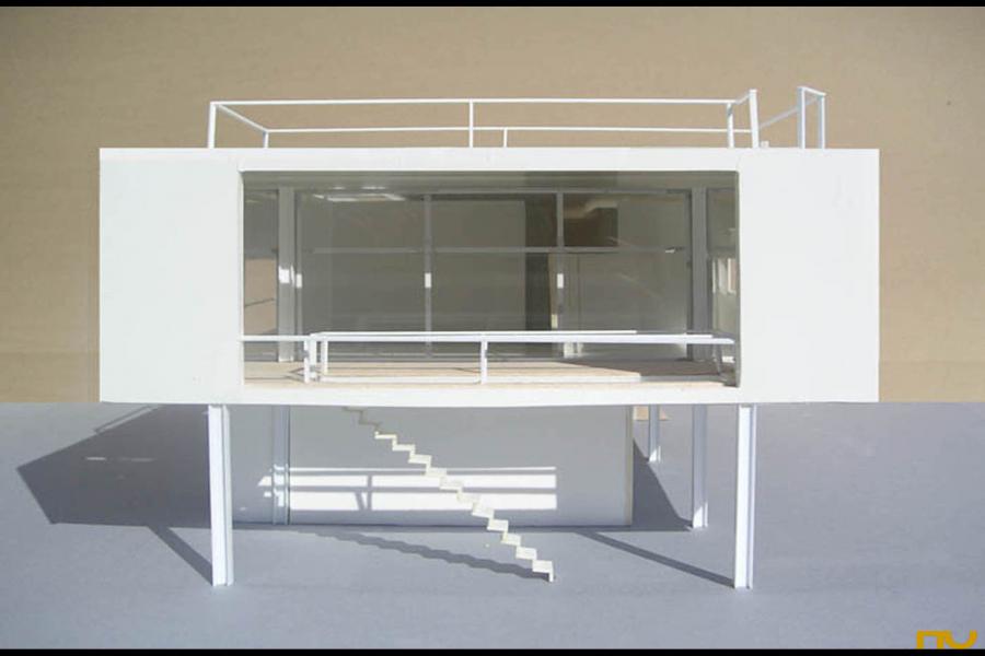 El 1935, Amedeo Bianchi li encarrega a Terragni el projecte de casa seva al poble de Rebbio (Com, Ità lia). Es tracta d'un procés bastant accidentat, al llarg del qual, Terragni produeix tres propostes. El primer projecte es caracteritza principalment per l'expressió del marc estrucural i l'alliberament de la planta baixa excepte per la presència d'una petita caixa de serveis amb un estudi adjunt, deixant aixà la primera planta destinada a l'habitatge que serà , al seu vez, coronada per una coberta enjardinada. L'entrada principal s'efecúa mitjançant una rampa escala que ens eleva del pla del terra per penetrar en el petit volum, connector vertical entre la planta soterrani i la primera planta. Aquesta escala i el vestÃbul s'obren visualment cap al porxo mentre que l'estudi ho fa cap a la façana principal. La planta primera, de 24,50 m x 11 m, s'organitza en dues parts: cap al sud-oest s'estén l'ala dels dormitoris i cap al nord-est, el de la sala i la seva galeria exterior. Des de l'extrem sud-oest fins a la sala principal, una terrassa allargada recorre la façana sud-est, coberta per una llosa que emfatitza l'horizontalidad. Al llarg d'aquesta façana principal, els draps de paret es retarden respecte de l'estructura, creant un pòrtic que embelleix la façana amb elements de diferents profunditats, retardant i exposant murs, plafons vidrats, filtres i baranes.. Un esquinçament, repetit en el nivell de la terrassa, li atorga a la llosa un aspecte flotant que preludia els efectes dels voladissos de la Vila Bianca (1936). La llarga sala que en s'hi hagi travessa tot l'ample de la casa; dos dels seus costats ofereixen façanes totalment vidrades, una cap al sud-est i una altra cap a la galeria en nord-est, mentre que la finestra de la façana nord-oest s'integra a una finestra correguda que domina tot la seva longitud. Des de la galeria pot baixar a la planta baixa mitjançant una escala recta d'un sol tram o pujar a la teulada mitjançant una escala de cargol. Aquesta galeria també està perforada verticalment en tots els nivells igual com les dues galeries petites que envolten la zona de serveis a la façana posterior. El segon projecte (1936) elimina l'expressió del marc estructural, les transparències, les galeries exteriors i els esquinçaments de les lloses a favor d'un joc de volums. Consisteix en dues caixes allargades i decalades, tant en alçat com en planta i unides al volum vertical de la caixa d'escales. El sistema d'accés es resol de dues maneres: el principal, mitjançant una rampa escalonada que arribava a un voladÃs d'accés; el secundari, mitjançant una escala i rampa escalonada situades en el costat contrari donant directament el vestÃbul. En el tercer projecte (1937), pressionat per la necessitat d'incloure dues unitats en lloc d'una, Terragni produeix un volum mes compacte en el que intenta combinar la caixa flotant amb el dinamisme volumètric dels marcs per davant de la caixa. Una enorme cornisa de formigó vist domina la façana sud-est (carrer) i emmarca un balcó sense tocar-lo. L'entrada principal es produeix per sota d'aquesta peça, mitjançant una rampa escala que condueix al volum d'accés, situat en el centre de la façana lateral. Continuant al llarg d'aquesta galeria s'arriba a una escala oculta per la façana posterior de l'edifici, que condueix a la segona planta. Malgrat que la primera versió resulta la més interessant i més ben desenvolupada, és evident que tot el procés resulta una espècie de transició entre els seus projectes de la Vila sul Llac i la Vila Bianca i una manifestació de la maduresa professional i estilÃstica de Terragni. (F.A.P./E.D.L./R.G.) |