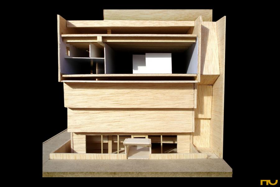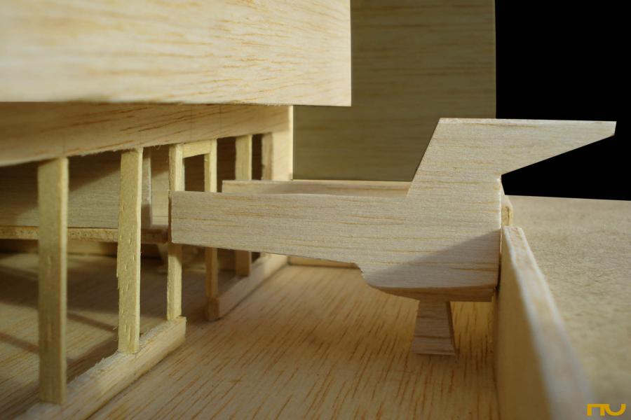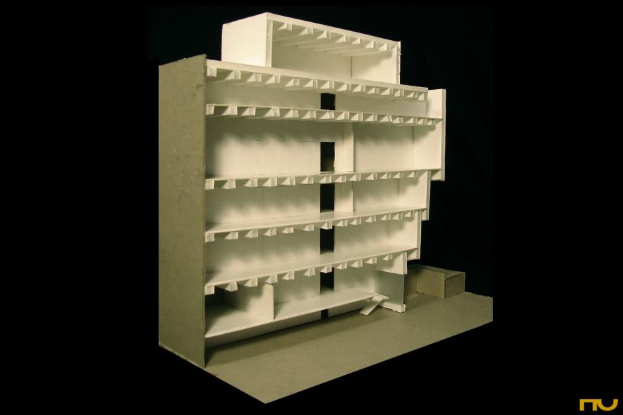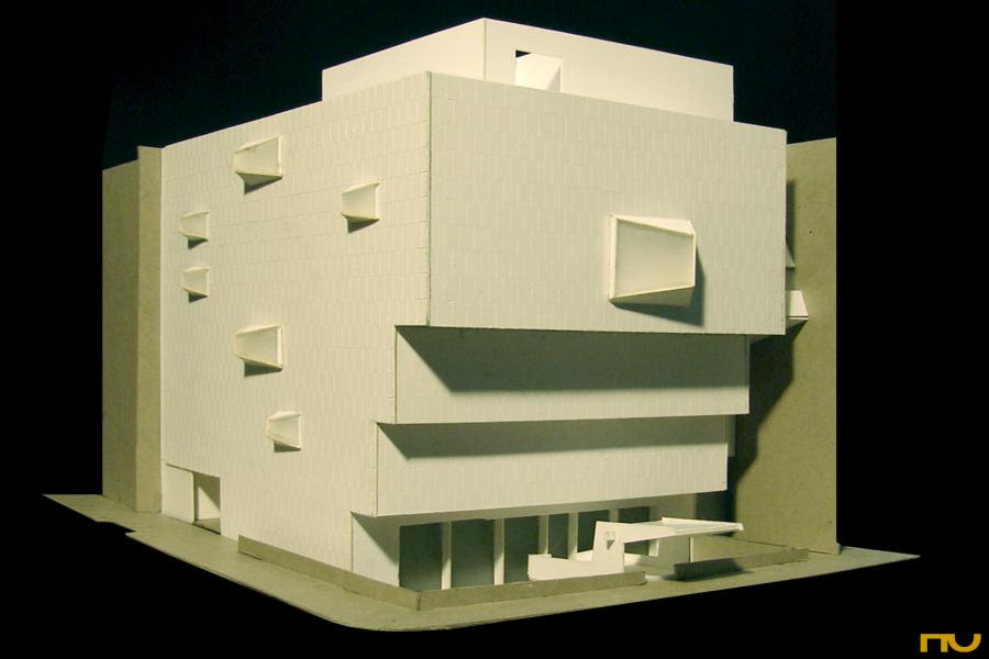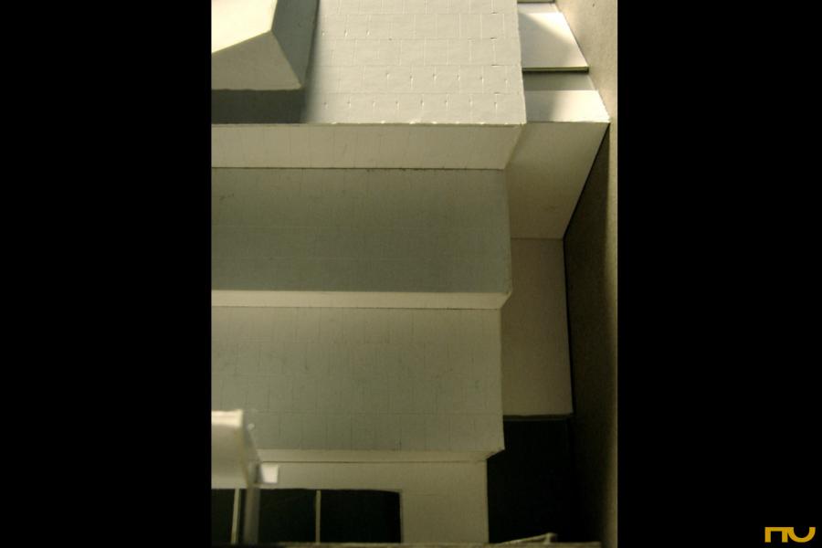 forma escalonada, hormigón, museo, patio, esquina, vacío, repetición,