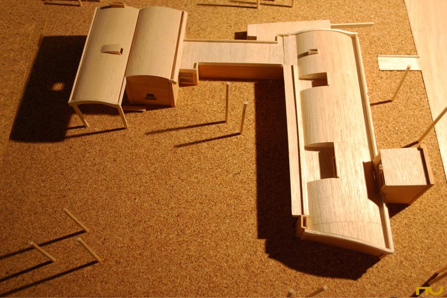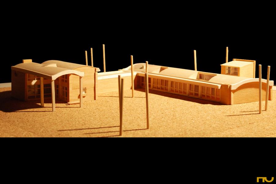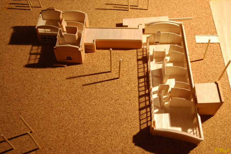 Las distintas articulaciones entre la bóveda de hormigón de 8 cm de espesor, pilares de hormigón y muros de ladrillo (dos hojas de 15 cm) que presentan los cuatro diseños muestran un innovador ejercicio de sintaxis entre materiales relativamente tradicionales. Uno de ellos es el paso de la bóveda corrida clásica -apoyada sobre muros continuos- a una bóveda apoyada sobre pilares de hormigón con el objetivo de abrir el espacio lateralmente, con la incorporación de una viga que recibe los tensores y soporta los empujes de la bóveda. El otro, de índole más plástica, es el encuentro de la bóveda con los testeros, donde podemos apreciar tres variantes: el muro cubre la bóveda, la bóveda rebasa el plano de ladrillo y le provoca una sombra, o simplemente, la bóveda erigida en elemento independiente vuela para conformar un porche. Junto a éstas, aparecen otras innovaciones, como las entradas de luz cenital, las cajas de persiana, el uso de carpinterías metálicas correderas o el pavimento de tacos de madera de algarrobo.