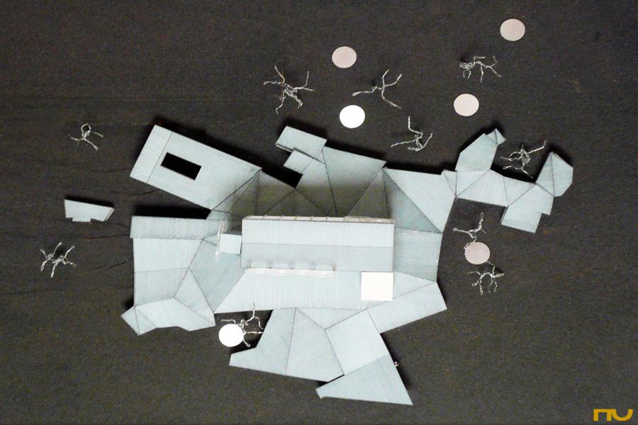 biblioteca, orgànic, dinamisme espacial, mur cortina, coberta inclinada,