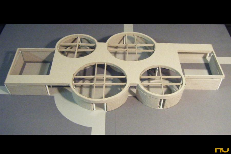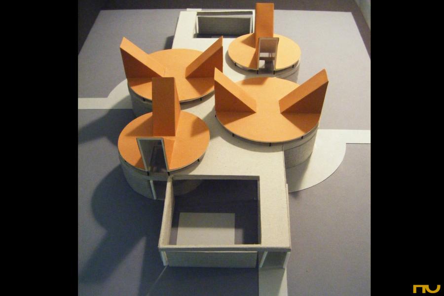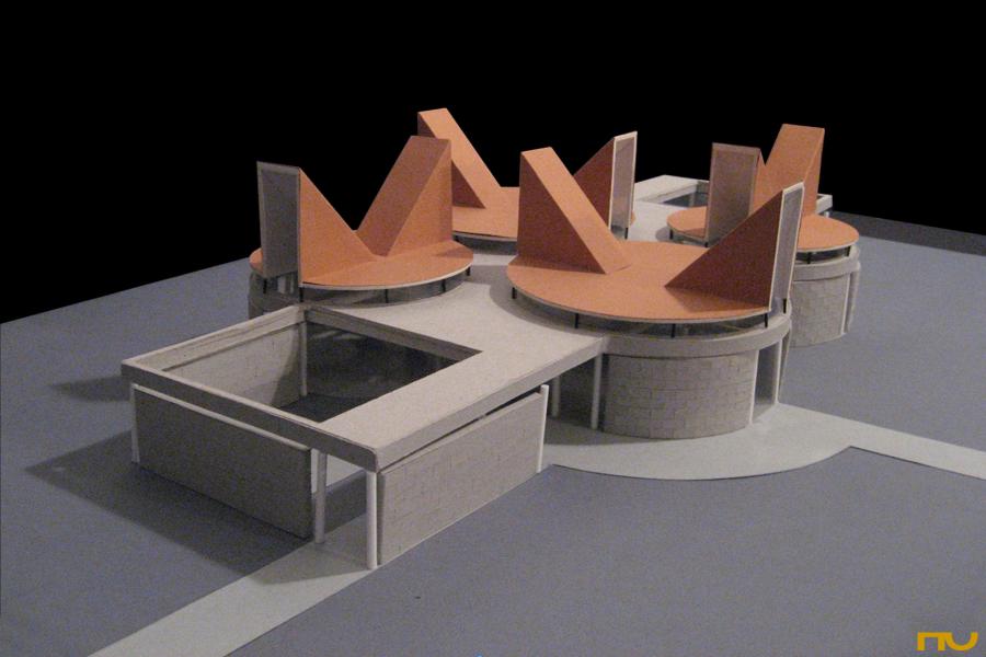 agrupació, cercle, edifici religiós, forma convexa, llum zenital, visió diagonal, dinamisme espacial, equilibri rotatori, repetició, Laberint,