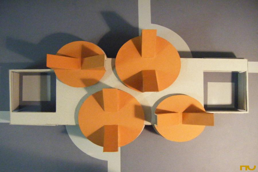 D’altra banda, cadascun d’aquests espais circulars tenia una coberta independent suspesa per sobre del forjat gràcies a una estreta tira de finestres “claristori”, recolçada en un entramat de jàsseres de formigó armat vist. Allò estava destinat a provocar un efecte d’ingravidesa enfatitzat per la il·luminació d’unes claraboies contraposades que marcaven a coberta un bosc de volums triangulars recoberts de coure. La orientació diferent d’aquestes claraboies i els espais a l’interior juntament amb les seves cobertes circulars donaran al conjunt un efecte dinàmico-rotacional que justifica el nom amb el que van Eyck bateja el projecte. L’ús d’elements clàssics de l’arquitectura religiosa recol·locats en un ordre diferent sense cap mena de restricció cultural, i la focalització en la individualitat i sungularitat del detalls donen a la obra d’Aldo van Eyck un profund rerefons antropològic en el que l’home modern, està davant Déu sense oblidar-se del món en el que es troba.