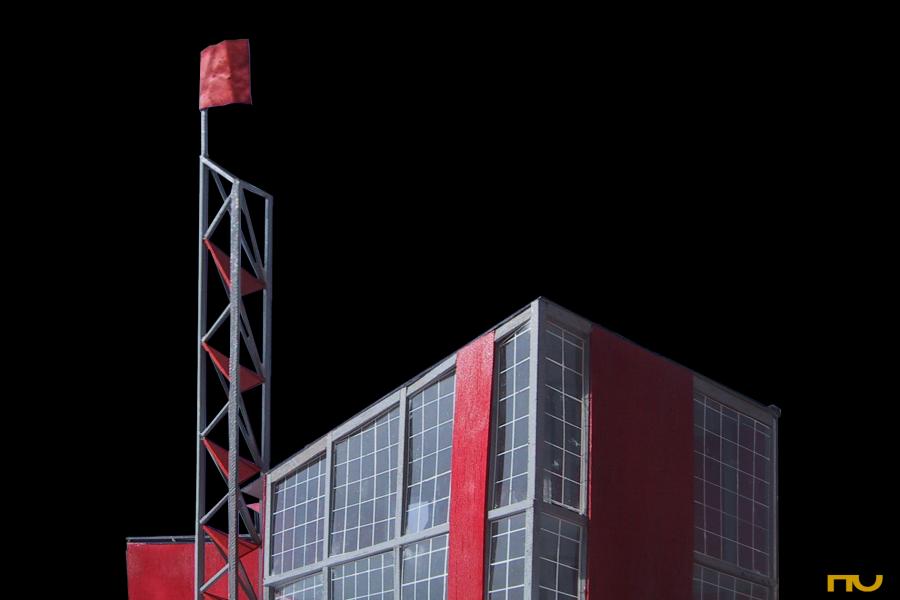 Al novembre de 1924 es va convocar un concurs per a l’elaboració d’un projecte per al pavelló de la Unió Soviètica a la Exposició Internacional d’arts decoratives de Paris de 1925. El concurs va contar amb la participació d’arquitectes de diferents orientacions formals, des d’aquells encara propers al classicisme com I.A Fomin o V. Shchuko, o els que militaven a les files constructivistes com M. Ladovskij, V.F. Krinski,M. Ginsburg, I. Golosov i qui seria el guanyador del concurs, Konstantin Melnikov. Les bases deixaven clar que el projecte devia expressar la ideologia de la URSS com a estat obrer i camperol i la unió fraternal de les diferents nacionalitats sota la bandera de la revolució socialista del 1917. Tanmateix, establien que la construcció havia de ser de fusta i la superfície , d’uns 325 m2, resolta en dos nivells. El nivell inferior havia d’estar dedicat a la varietat ètnico-cultural de les nacions que conformaven la Unió i el nivell superior, a mostrar l’interior de quatre espais significatius: un club obrer, una casa obrera, una sala de lectures, una llar infantil, com una manifestació de la nova societat. Des del començament del seu projecte, Melnikov va seleccionar una sèrie de símbols amb els que realitzaria fins a set muntatges diferents: la esfera del mon, la roda de la història, les cunyes triangulars, la torre, la falç i el martell, les banderes vermelles, o les consignes de “La Internacional”. Aquestes formes van ser progressivament sintetitzades i muntades com peces d’una gran maquinària, de fet, en algun moment es va pretendre incorporar el moviment com a material de la obra en forma de girs o rotacions. Al projecte final, els signes triats apareixen fosos en una composició marcada per un eix que dividia diagonalment una planta de 29,5 x 11m, segregant dos prismes iguals, de forma trapezoïdal (en planta i alçat) i de color vermell. L’escala, primer element dinamitzador pel seu doble efecte diagonal i per la seva pròpia funció circulatòria, estava acompanyada per una coberta composada per una seqüència rítmica de panells de fusta de color vermell entrecreuats. Donat que sorgien de les arestes superiors –inclinades– dels volums laterals, aquests plans s’anaven creuant –com un aleteig vermell– a diferents alçades fins coincidir a la zona central per sobre del replà de l’escala i de l’accés a les exposicions de la planta superior. Aquest joc binari, que tenia un antecedent en un altre projecte del mateix any –el sarcòfag de Lenin– es transformaria en una de les constants del seu treball: la conciliació entre la composició clàssica i el dinamisme constructivista. A una banda de l’escala, i actuant com a contrapunt vertical, s’ubicava una torre d’alçada igual a la longitud del catet llarg dels triangles que conformen la planta. Sense basament, els tres pilars de la torre sorgien del terra cap al cel, arriostrats per uns plans triangulars. Agregant un nou efecte escenogràfic, aquests es succeïen segons intervals i inclinacions variables, en un crescendo que recorda les espirals presents en els croquis del projecte. (F.A.P) |