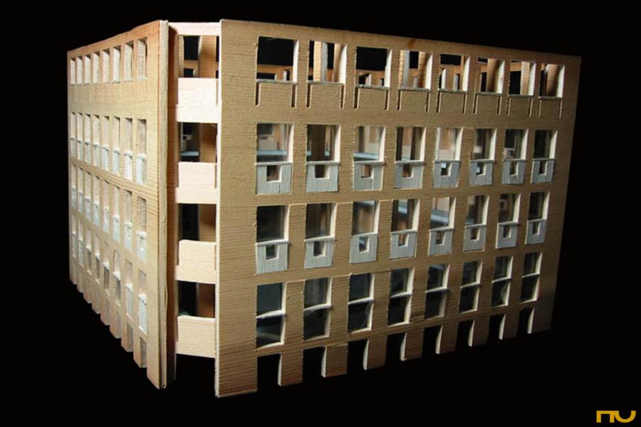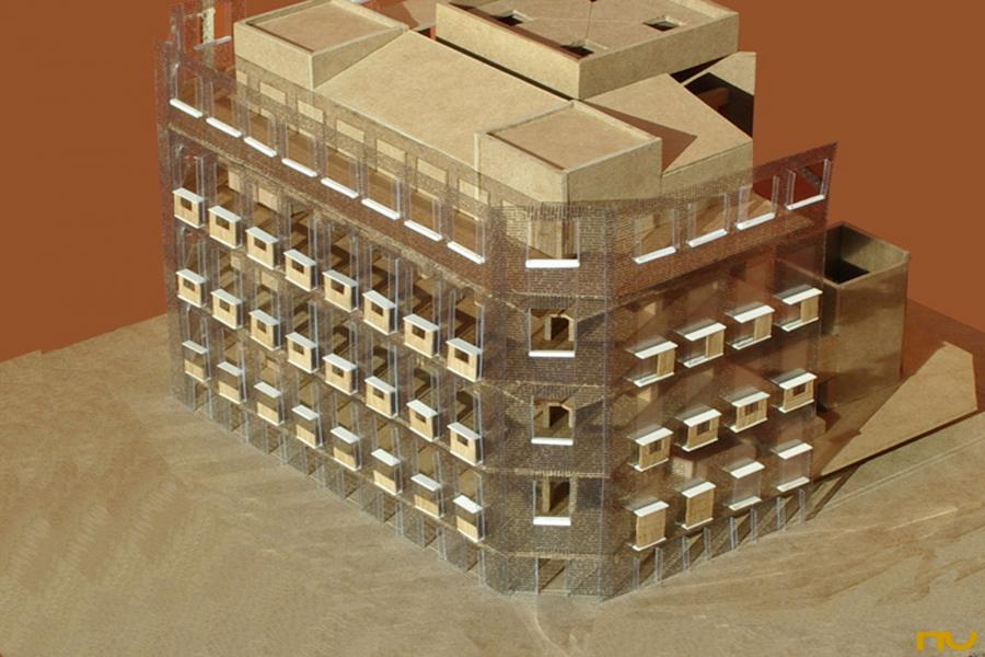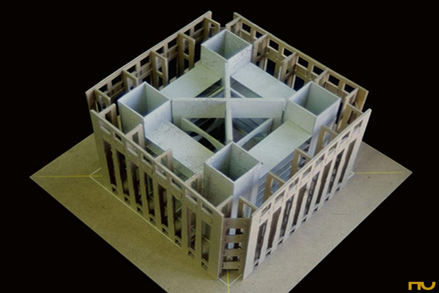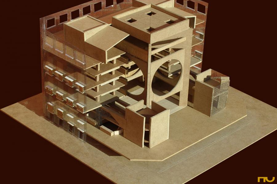 Las variaciones y ajustes -a veces como consecuencia de restricciones impuestas por el cliente- tienen lugar fundamentalmente en diferentes aspectos de lo que Kahn llamaría el Diseño del edificio: las fachadas, las esquinas, la sección y la resolución de la iluminación cenital central. Las fachadas de la primera versión estaban compuesta por secuencias de arcos de medio punto de ladrillos que en la versión definitiva se transforman en unos sutiles arcos planos sobre intercolumnios estrechos; en el interior ésos darán lugar a los espacios de lectura individual, "una especie de lugar descubierto en los pliegues de la construcción", según el propio Kahn. Las esquinas pierden, ya desde la segunda versión, unas torres triangulares que articulaban los cambios de plano para presentarse como planos recedidos respecto de las fachadas principales con dos consecuencias: la mayor independencia formal de los planos de fachada y el traslado del acceso desde las torres al eje del edificio y más cerca del hall principal. La sección cambia al eliminarse un entrepiso, lo que provoca una ruptura en la igualdad entre plantas expresada en fachada. Finalmente, el aparato cenital evoluciona desde la forma piramidal hasta adoptar la forma de dos grandes aspas de hormigón cruzadas y giradas en diagonal respecto de la planta. (F.A.P.)