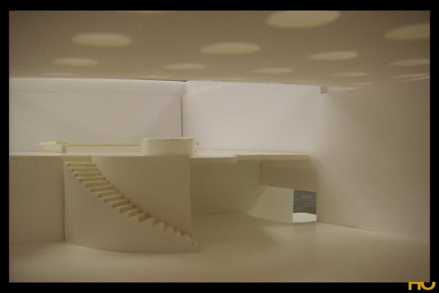 biblioteca, centro, escalera, forma curva, madera, luz cenital, polaridad,