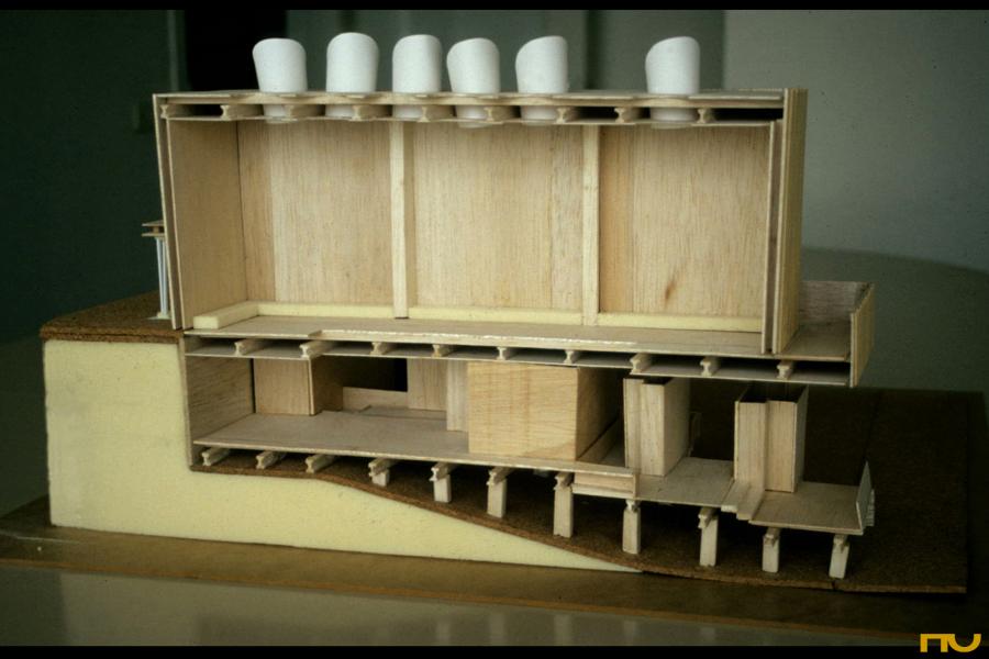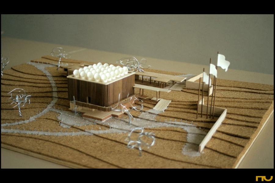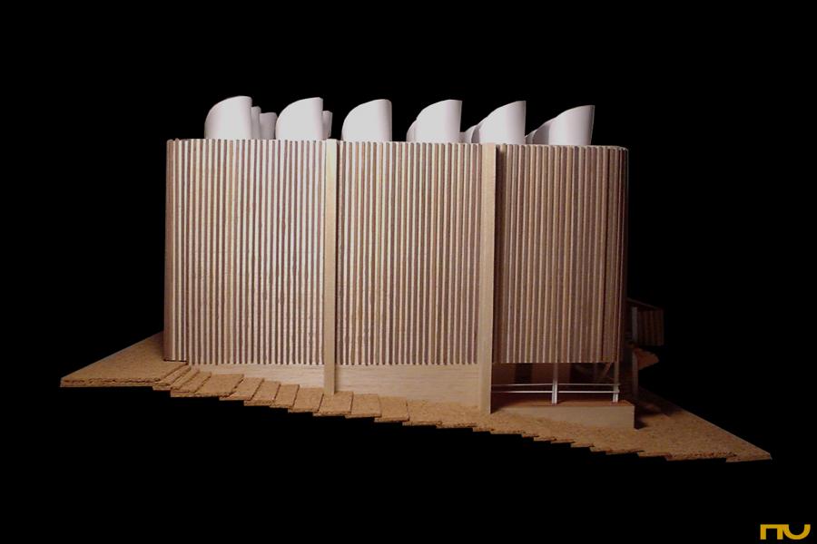 articulació, forma corba, fusta, llum zenital, pavelló, polaritat, textura,
