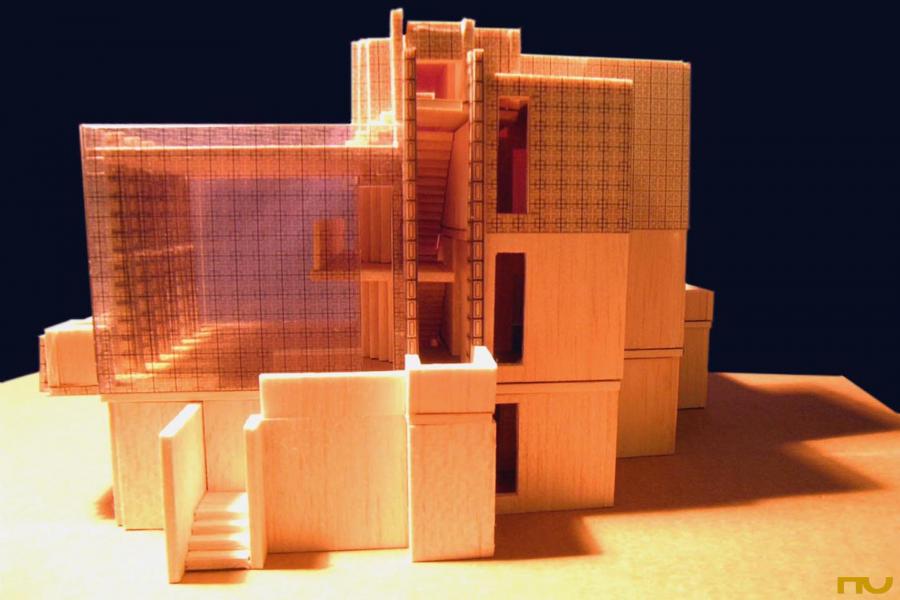 bloc tèxtil, habitatge, ornament, terrassa, terreny inclinat, verticalitat,