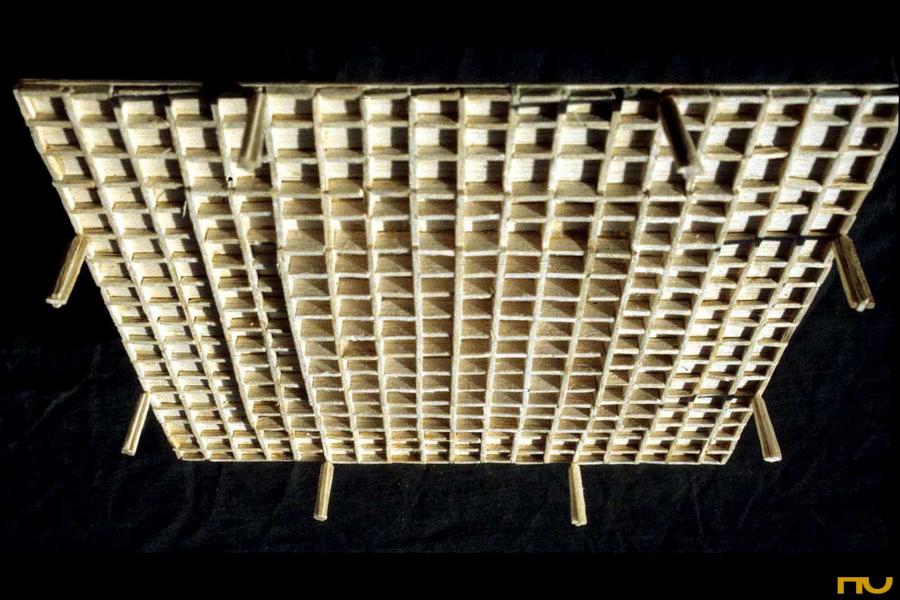 El edificio se encuentra situado en una parcela delimitada por dos calles de tráfico rodado y situada en una zona muy abierta, sin construcciones adosadas a los lÃmites del solar. Topográficamente, existe un desnivel significativo entre una calle y otra, del cual Mies sacará partido al presentar su edificio sobre una plataforma a la que llegamos a través de un juego de escaleras, reforzado plásticamente por dos muros, uno de los cuales sirve de lÃmite con la calle hasta el aparcamiento trasero y el otro, mucho más importante desde el punto de vista proyectual delimita el podio por la cara Sudoeste creando un espacio exterior a modo de patio en el cual Mies prevé alguna escultura. En cualquier caso, el acercamiento nunca es frontal, a lo largo del trayecto de acceso el edificio es percibido en escorzo hasta que nos encontramos muy cerca de la entrada, bajo el pórtico. El programa consistÃa en albergar las oficinas de la empresa productora del Ron Bacardi. El edificio se distribuye en dos plantas diferentes: la planta superior -la más significativa y visible, apoyada sobre la plataforma- estaba destinada a oficinistas y la inferior a las funciones secundarias, como almacenes, cafeterÃa, aseos. La planta superior era totalmente libre, los únicos elementos fijos que encontramos son el corazón de ventilación de suelo a techo, los muros independientes de madera de 2 metros de altura y la escalera que baja al nivel inferior. Con estos elementos fijos parece que se llegan a diferenciar tres espacios. Uno mayor que servirÃa para albergar la gran sala de trabajo, otro situado a la entrada y presidido por la escalera que nos servirÃa de recepción y otro que queda a mano derecha según entramos y que servirÃa de sala de reuniones. Estructuralmente se trata de una cubierta cuadrada de 54 metros de lado realizada en hormigón, sustentada por ocho columnas cruciformes, dos por lado, también de hormigón de 7 metros de altura. La cubierta es una gran retÃcula de vigas postensadas, con un canto de 1,5 metros de canto en el borde y de canto mayor en la zona central de la cubierta, respondiendo al diagrama de momentos en ese punto. Una serie de elementos recuerdan las referencias shinkelianas que enriquecen los artificios de Mies: a la memoria del estilóbato clásico que transmite la plataforma se unen la reducción de sección en las columnas de cruciformes de hormigón en su encuentro con la cubierta resuelto con una articulación que reinventa el capitel, los casetones de la estructura, o la expresión, a modo de metopas sobre un friso, de los rigidizadores del alma de las vigas. Los pilares no se colocan en las esquinas de la cubierta, sino 15 metros hacia dentro, creando un voladizo espectacular que, junto a la colocación retirada 6 metros hacia dentro del cierre de vidrio ahumado, crea una zona oscura en los alzados. Esta estricta separación entre la estructura envolvente y los elementos definidores del espacio, surgida en el temprano proyecto para una sala de conciertos de 1942 volverá a repetirse en el Museo Schäffer en Schweinfurt (1960) o en la Nueva GalerÃa Nacional de BerlÃn (1962-68). (F.A.P.) |