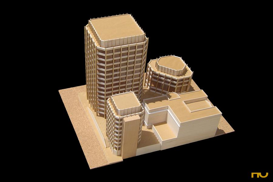 agrupació, articulació, edifici d'oficines, formigó, recinte, rigor, fusió estructura-tancament, modulació,