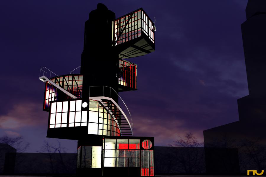 El 1924 es va convocar un concurs per la construcció d’una torre pel Leningrádskaya Pravda (La veritat de Leningrad–l’actual San Petersburg) a la capital de la Unió Soviètica. L’espai disponible era mínim: un quadrat de 6 x 6m a la plaça Strásnaya (Strasnoy) –avui la plaça Pushkin– ubicada sobre la traça del Bulevard Strasnoy, que limitava el segon i tercer anell de Moscou, i prop d’un dels carrers radials que connectava amb el kremlin. La privilegiada ubicació de la torre es similar a la triada per El Lissitsky per als seus gratacels horitzontals i estructures commemoratives i revela la intenció propagandística d’aquesta ocupació de les principals places de la ciutat amb manifestacions de l’art revolucionari. Per tant, no sorprèn el llistat d’arquitectes que es presenten al concurs: els germans Vesnin, Golosov, Ginzburg i el propi Melnikov, tots ells membres destacats de les files constructivistes. Utilitzant paraules del crític formalista Victor Sklovsky, s’haurà de veure, “la dissimilitud d’allò que és similar” per destacar els valors d’aquest projecte envers els altres, tots ells disposats a expressar els símbols revolucionaris, el ritme nou de la ciutat, el clamor modernitzador. El projecte de Melnikov partia d’un nucli cilíndric de formigó que allotjava una caixa d’escales de cargol i un ascensor. Entorn a aquest nucli, rotaven quatre mòduls d’acer i vidre, suspesos en voladís mitjançant unes guies i perfils metàl•lics, una idea que repetirà en els croquis realitzats per al concurs del Pavelló de Paris de 1925. La seva proposta semblava barrejar les idees presents també a la proposta dels germans Vesnin– guanyadors del concurs– i de Golosov, com la incorporació del moviment –el temps– com un material nou per la arquitectura, els efectes de la transparència, o el formigó armat. Però mentre els Vesnin promovien la visió del moviment vertical de l’ascensor o la del cartell a la coronació de la torre, Melnikov semblava més interessat en cercar la major varietat de posicions d’aquests mòduls mòbils i conseqüentment, la infinita riquesa d’efectes i de llum en tot l’edifici. I si bé utilitzava una estructura de formigó com Golosov, mentre que aquest modelava el material forçant-lo a adoptar complicades formes estrellades o cilíndriques, Melnikov ho interpretava com un nucli encastat en el terreny per compensar l’esforç al que l’estructura seria sotmesa per la rotació dels forjats. (F.A.P.) |