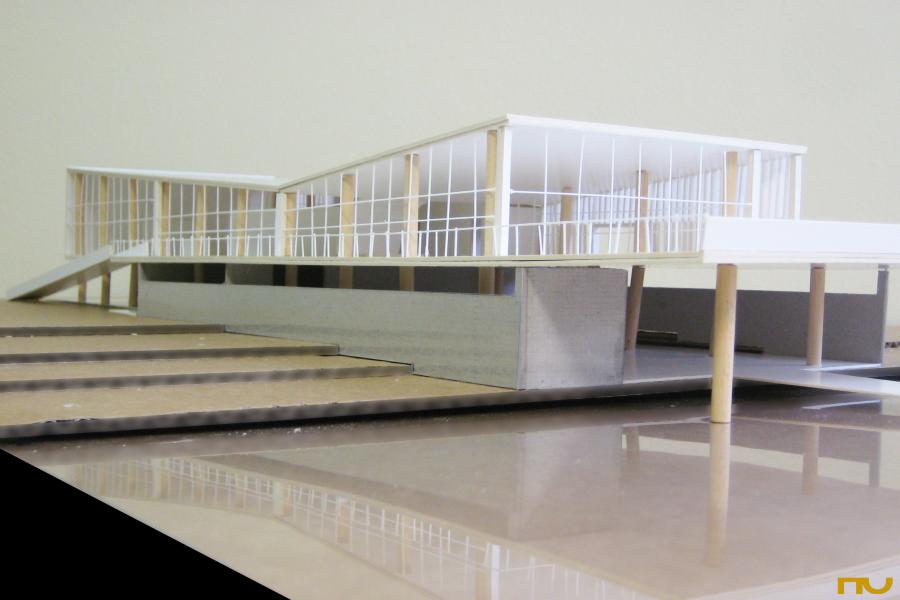 water, brise-soleil, sports building, slope, trapeze, cantilever,