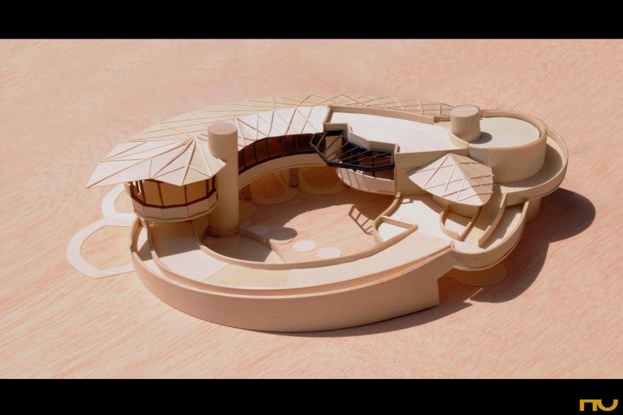 La consideració dels recorreguts solars i l'aprofitament o protecció de les brises dominants són trets fonamentals del projecte. La casa s'eleva sobre un mig anell circular recolzada sobre pilastres i vinculada al terreny amb una rampa espiral que tanca el jardí central. Superat l'accés i guanyat l'horitzontal, el moviment circular continua en la seqüència sala d'estar i zona de dormitoris per acabar a la terrassa. En aixecar-se, la casa genera un jardí ombrejat i ventilat que permet refrescar l'ambient i generar una brisa lleugera i desitjada. La pròpia rampa, de 7,60 metres d'ample, incorpora un jardí que l'acompanya fins a l'accés.