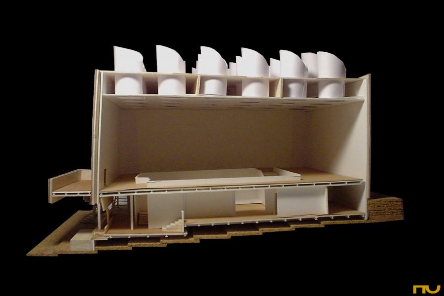articulació, forma corba, fusta, llum zenital, pavelló, polaritat, textura,