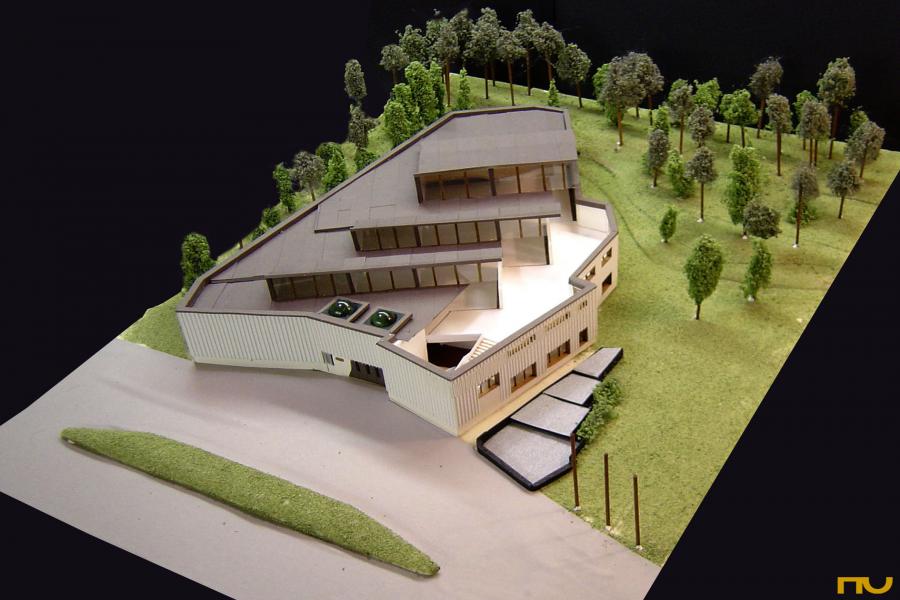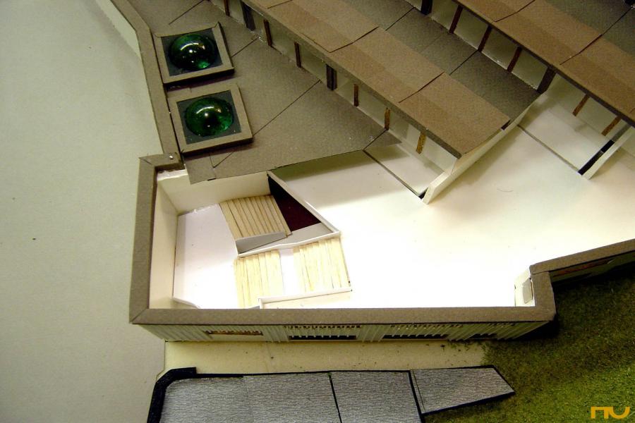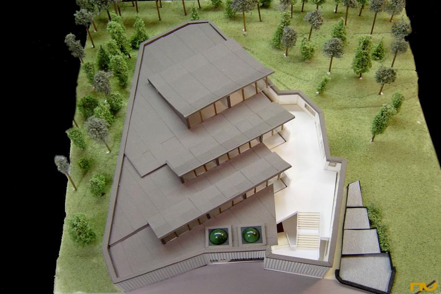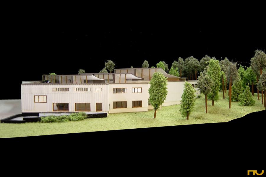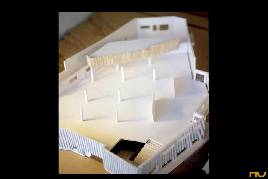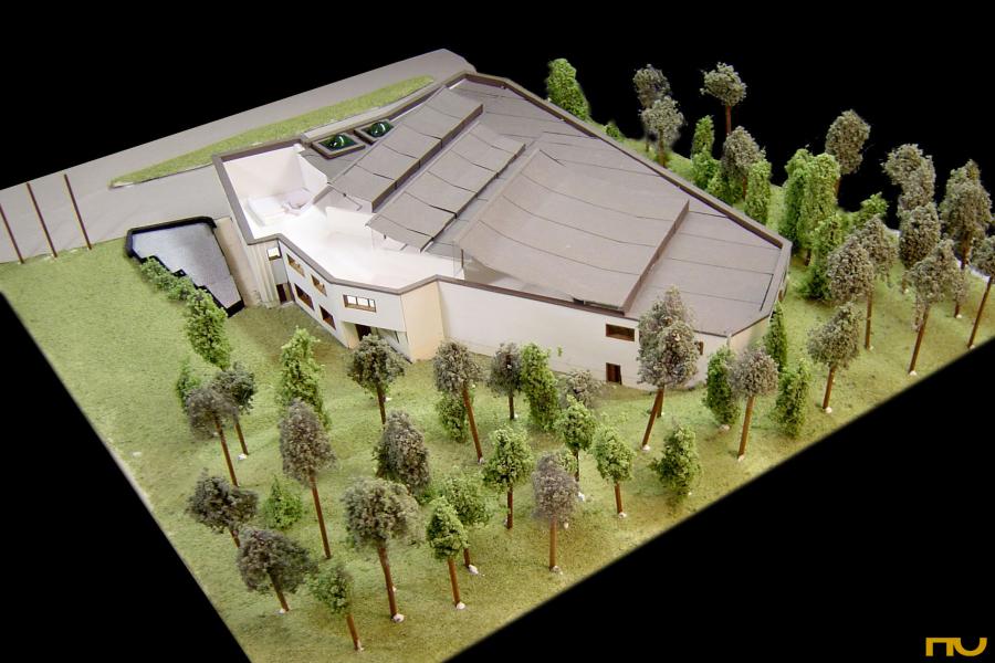 ceràmica, doble pell, forma corba, llum zenital, museu, polaritat, textura,